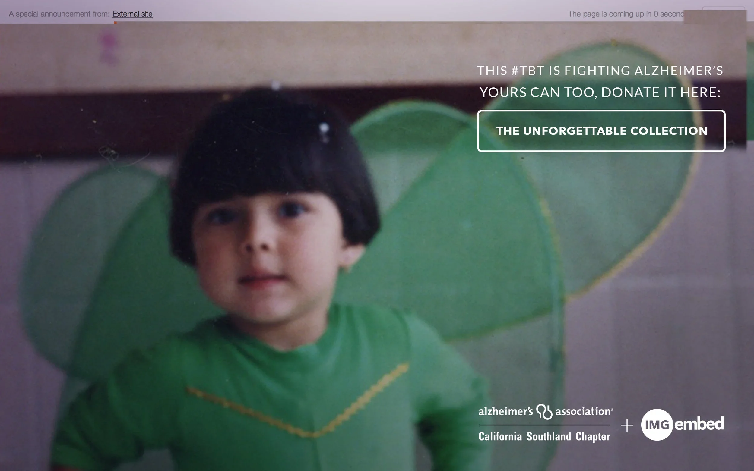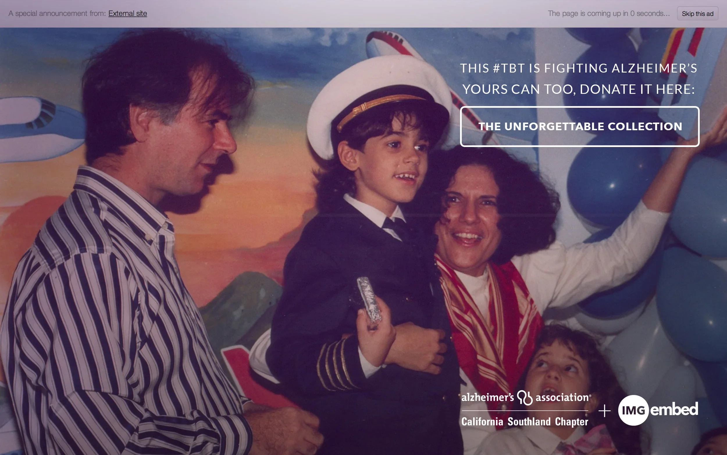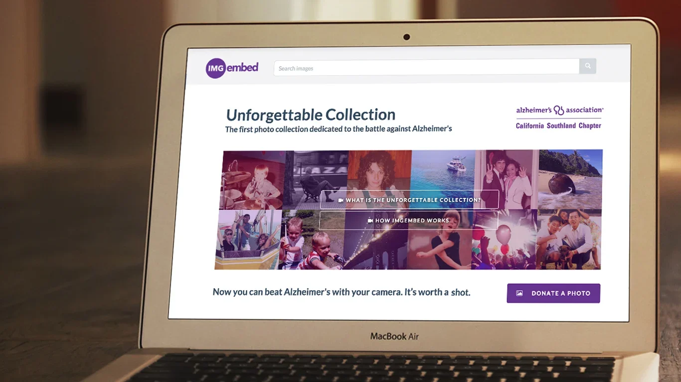 By signing up on Unforgettable.com, anyone could upload their own personal photos, donating them to a special image bank. When any of these images were used, the proceeds went directly to the Alzheimer's Association California Chapter.